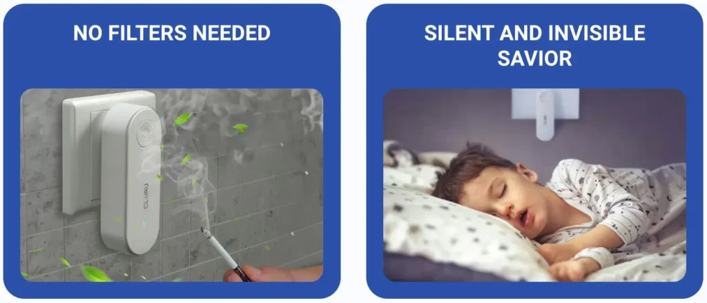 Clairu begins purifying the air immediately after you plug it in. Most users notice fresher air and reduced odors within 2–4 hours.